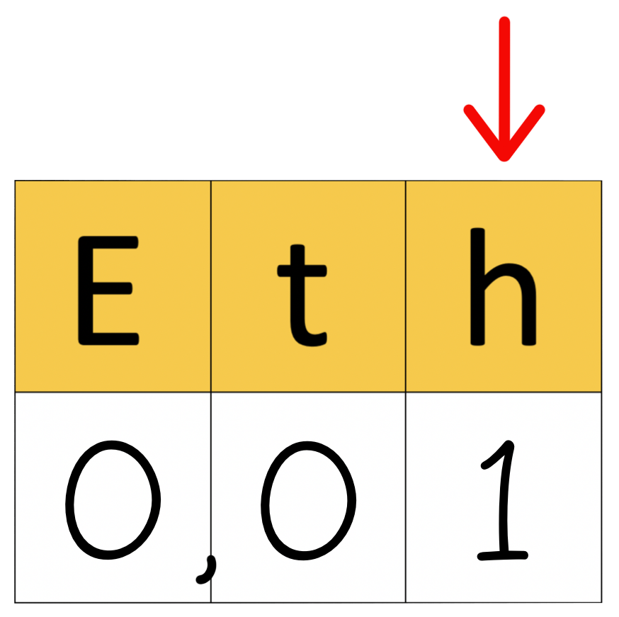 1/100 is dus letterlijk: 1 op de plek van de honderdsten.