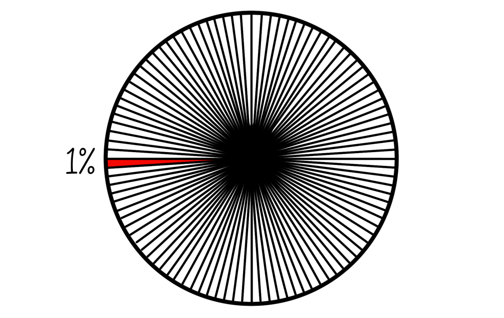 De cirkel is in 100 stukken verdeeld, dus je maakt de som 100% : 100 = 1%.