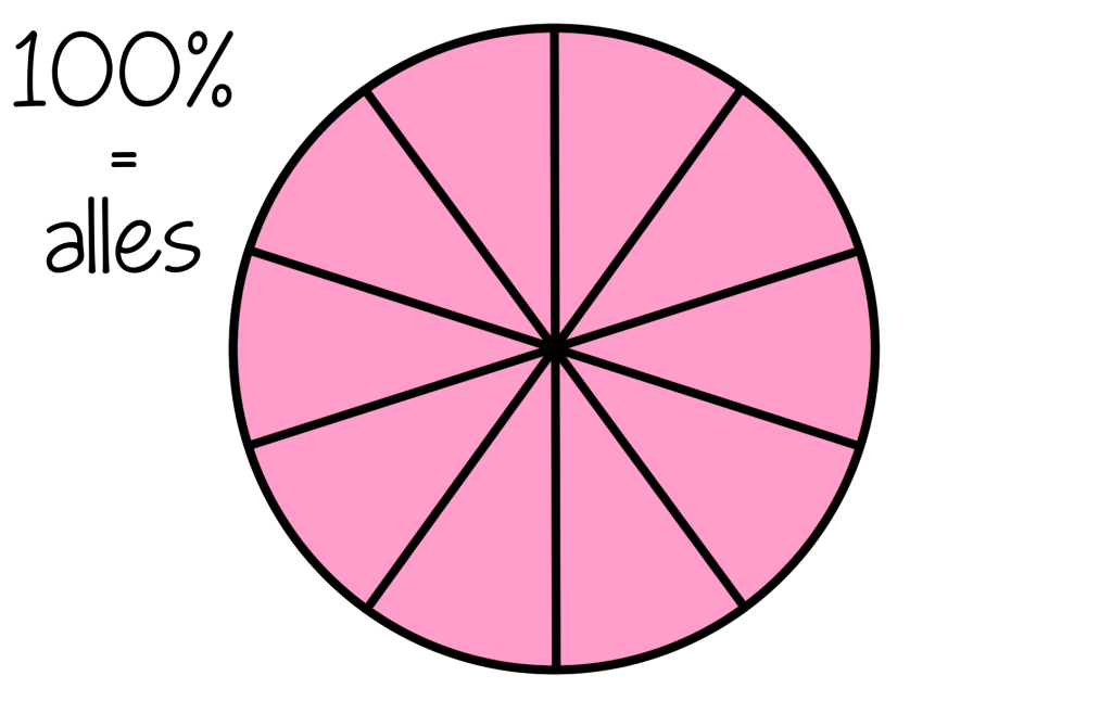 Om erachter te komen hoeveel procent er (in de cirkel van net) gekleurd is, deel je de 100% door tien.