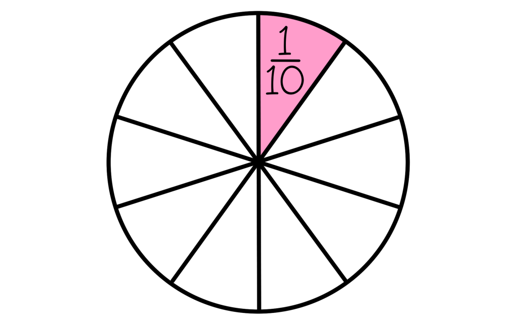 Nu weet je dat ieder stuk (en dus ook het gekleurde stuk van deze cirkel) 10% waard is.