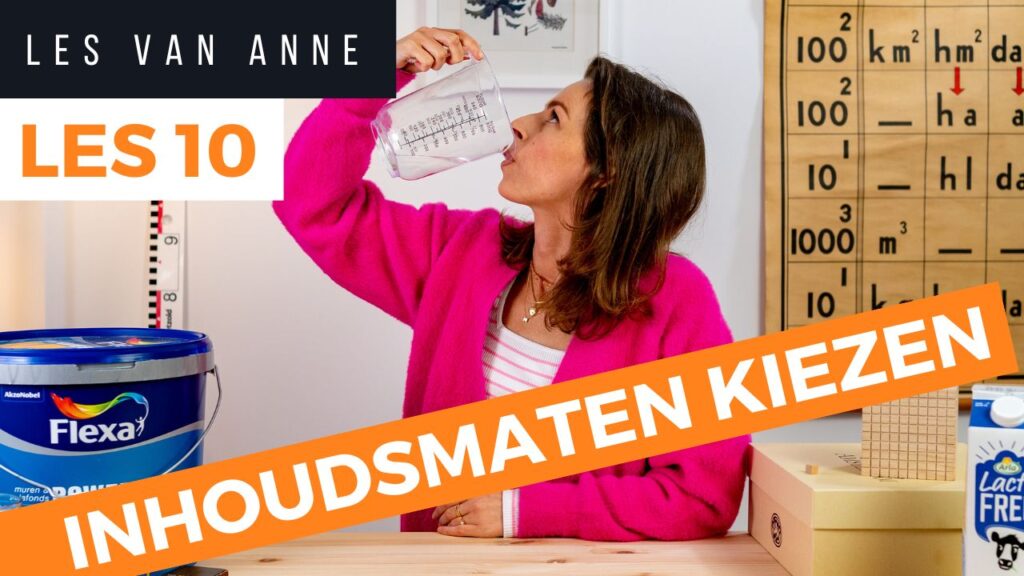 In deze les leert Anne je het verschil tussen vloeiende inhoudsmaten, zoals een liter, en ruimtelijke inhoudsmaten, zoals een kubieke meter. Je leert hoe je deze maten in de juiste volgorde van groot naar klein zet. Anne laat je voorbeelden zien van situaties in het dagelijks leven waarin je inhoudsmaten zoals liter, deciliter, centiliter en