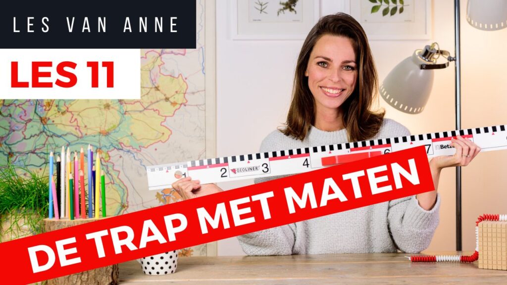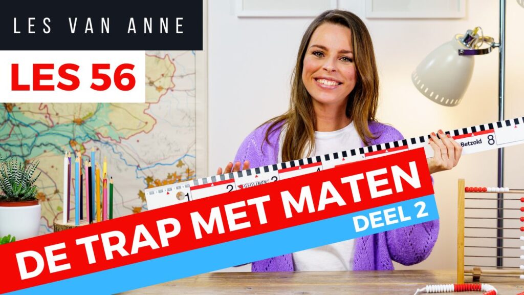 In deze les leert Anne je hoe je meters, decimeters, centimeters en millimeters naar elkaar om kunt zetten met gebruik van de trap.