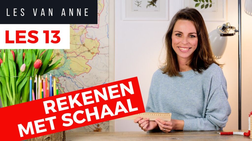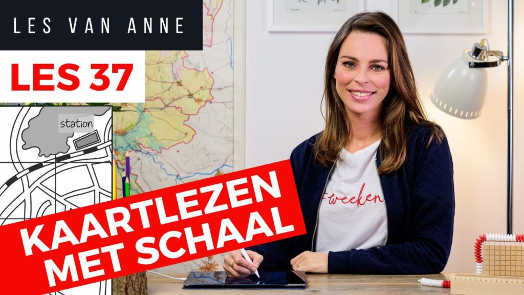 In deze les legt Anne je uit wat de schaal van een plattegrond of kaart is. Ook laat ze je zien hoe je, aan de hand van de schaal op de kaart, de werkelijke afstand kunt berekenen.