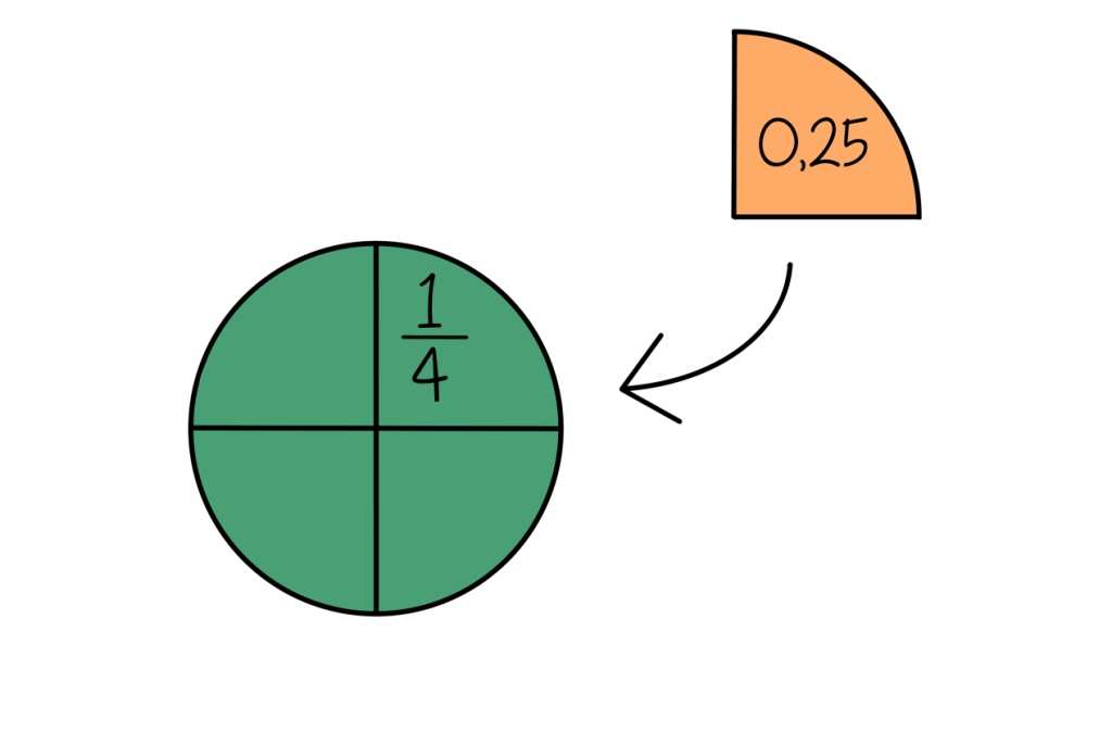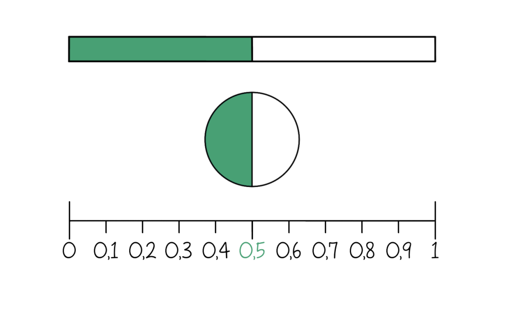 Zo bekent 0,5 een halve en 0,25 een kwart. Kinderen leren dat kommagetallen hetzelfde zijn als breuken, zoals: