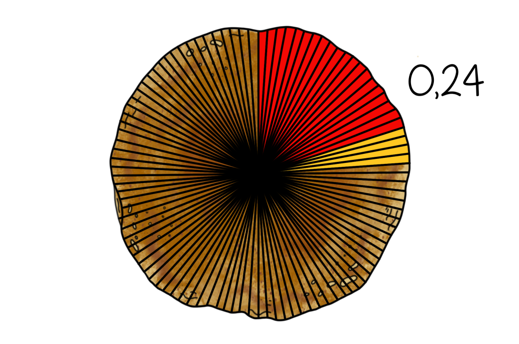 Dan terug naar het getal 0,24. Zo ziet 0,24 pannenkoek eruit: