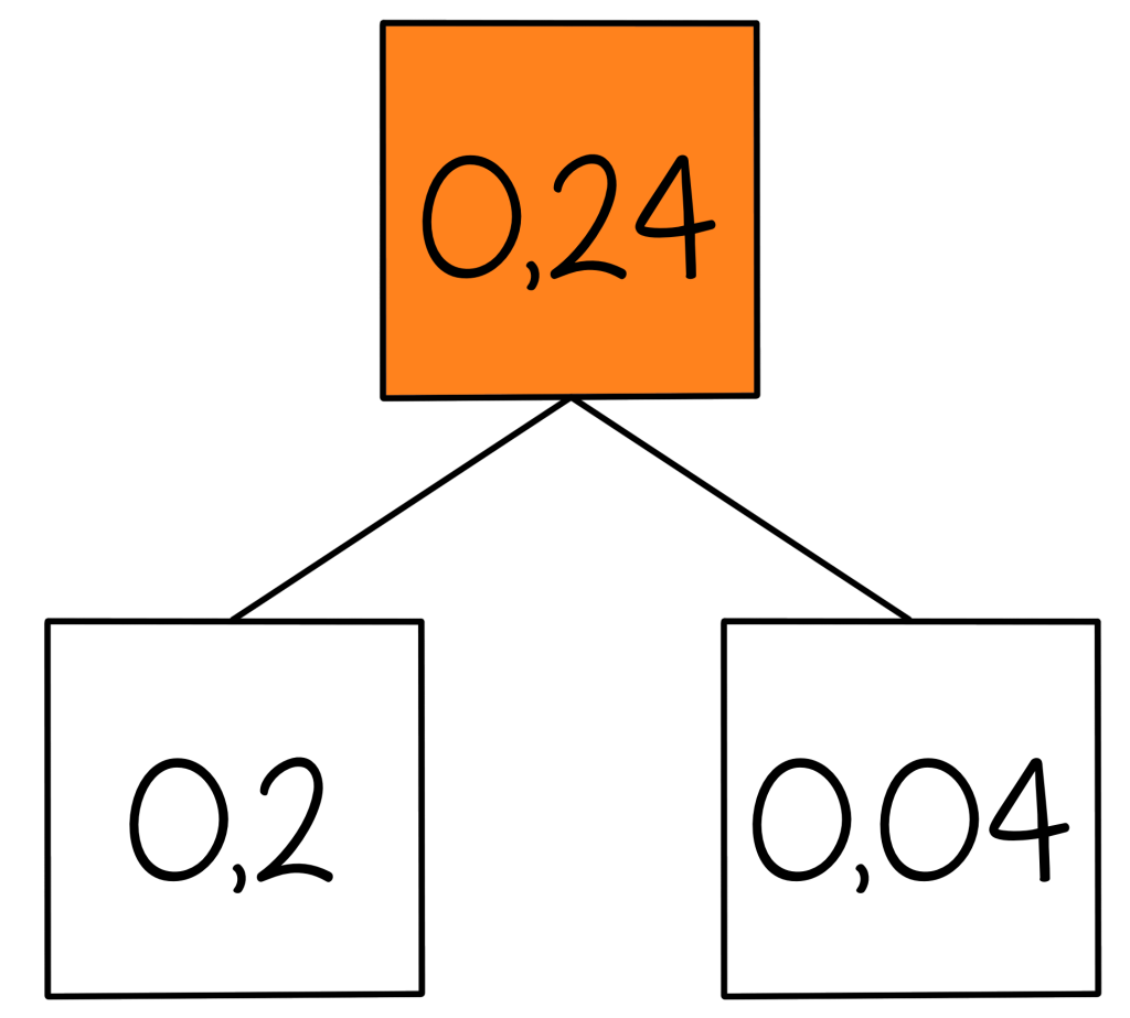 Dit getal kun je splitsen in 0,2 en 0,04.