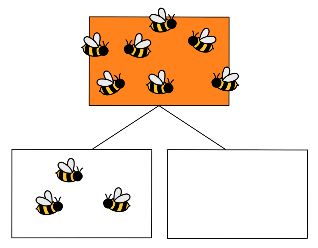In het bovenste teken je bijvoorbeeld 7 bijen. Zeg tegen je kind dat hij de 7 bijen mag splitsen.