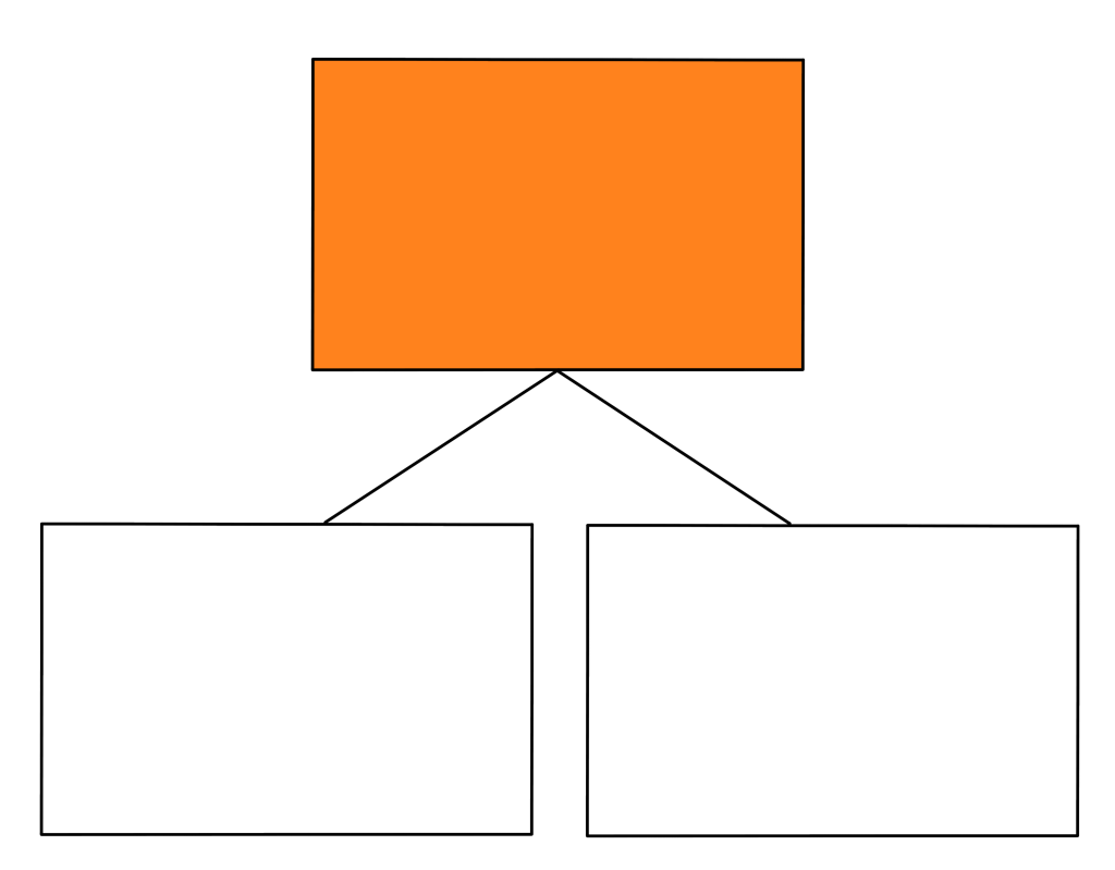 In het oranje vakje komt een tekening van het groepje, dat gesplitst gaat worden. De twee vakjes eronder laten de splitsing zien. Ik zal het laten zien!