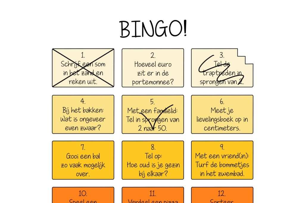 De rekenbingo is de ideale manier om ouders op de hoogte te stellen van het belang van oefenen in de zomervakantie. Print de rekenbingo met de beschrijving uit en geef het in de laatste schoolweek mee naar huis. Laat de kinderen in de klas weten dat je benieuwd bent welke vakjes ze allemaal af hebben kunnen vinken tijdens de vakantieperiode!
