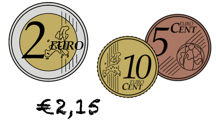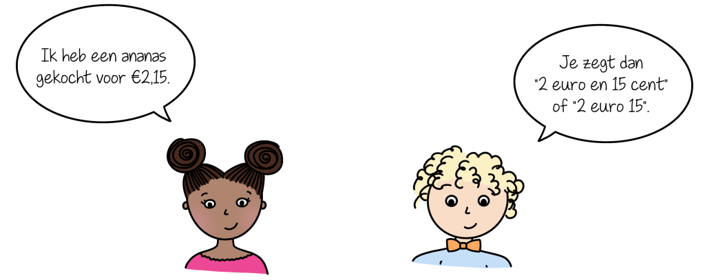 Een bedrag van bijvoorbeeld €2,15 spreek je uit als ‘2 euro en 15 cent’.