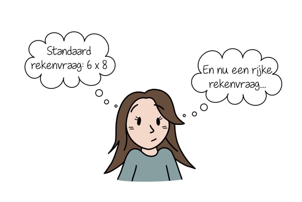 Rijke rekenvragen zijn vragen die verder gaan dan alleen het juiste antwoord geven. Als zo’n vraag wordt gesteld, moeten de hersenen even goed aangezet worden. Precies wat je wilt bereiken, want rijke rekenvragen…