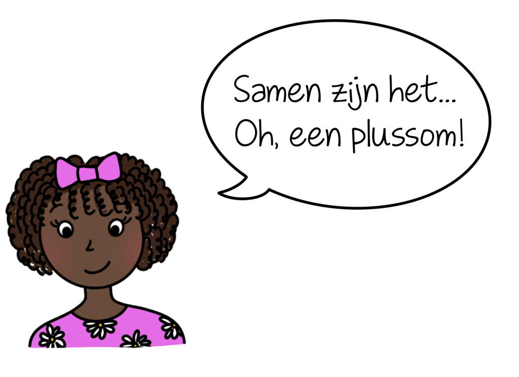 Neem de tijd om het verhaal goed te begrijpen. Let op sleutelwoorden (bijv.: samen, meer of minder dan…, bij elkaar, verdelen, terugkrijgen, in totaal), die kunnen wijzen op een bepaalde bewerking. Misschien moet het verhaal wel drie keer gelezen worden, voordat het lukt om de som eruit te halen. Dat maakt helemaal niet uit!
