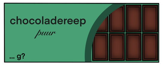 7. Hoeveel weegt deze chocoladereep? Je mag er 100 gram naast zitten. (Geen chocoladereep in huis? Zoek dan een ander product van ongeveer 100 gram.)